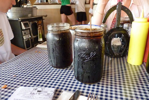 Les pots de confiture servent de verre dans le saloon