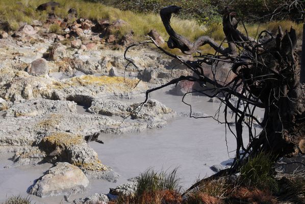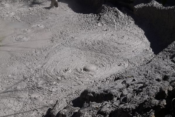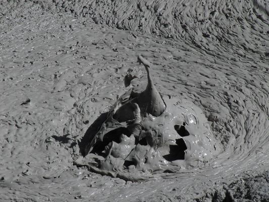 lac d'eau bouillonnante qui brasse les sédiments (boue, argile, soufre,