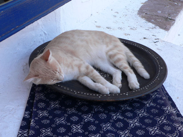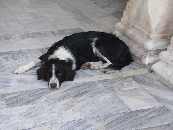 A Athènes les chiens se couchent, sur le marbre, à l'entrée des magasins pour avoir l'air frais de la climatisation