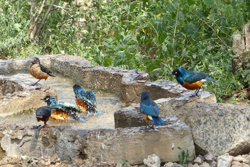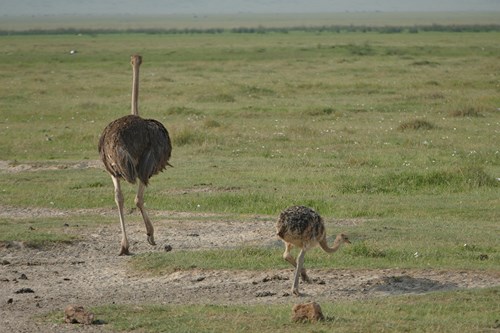 Autruches maasaï (plumeau orange à l'arrière)