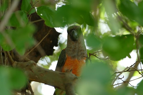 Perroquets à ventre rouge (mâle), à ventre vert (femelle) et  inséparable