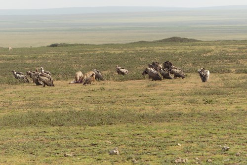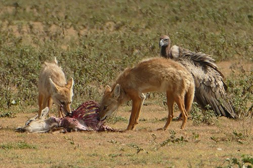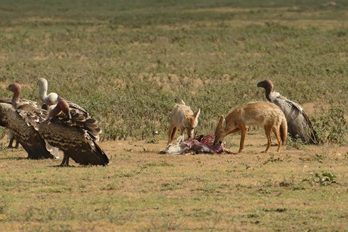 Les rapaces et scene de repas entre chacals et vautours
