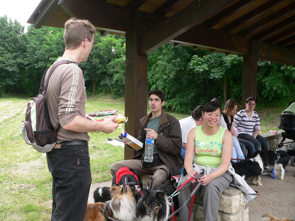 Typhée et Crunchie, Valérie et Joël avec Bali, Crispy, Nougarau et Ulys, Huguette avec
